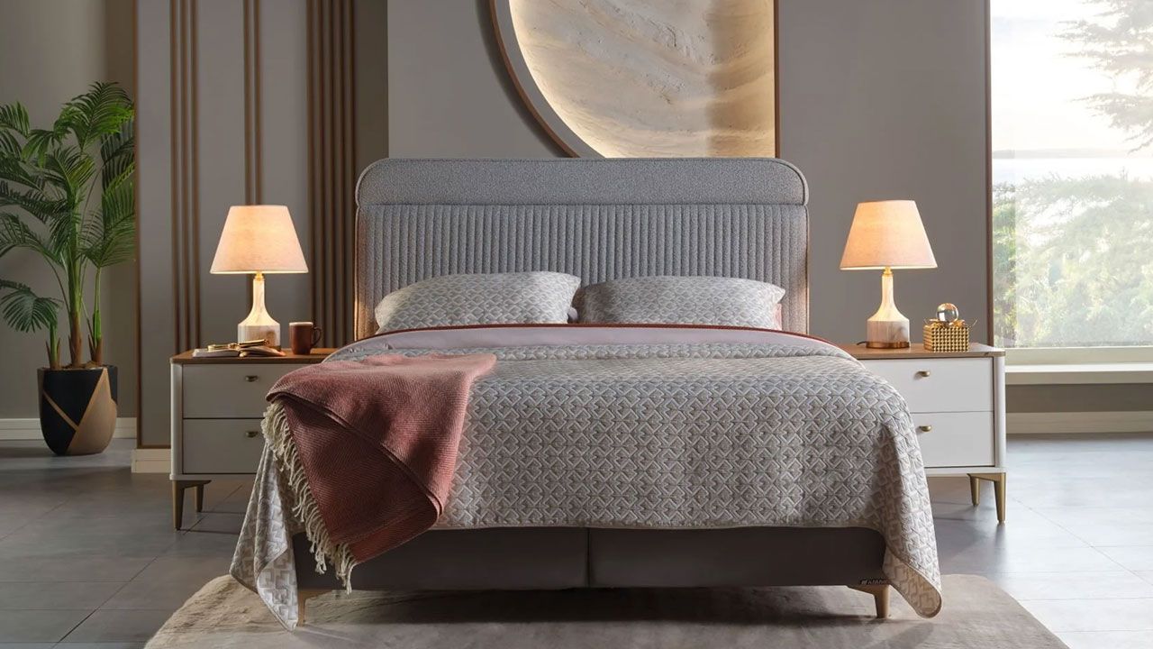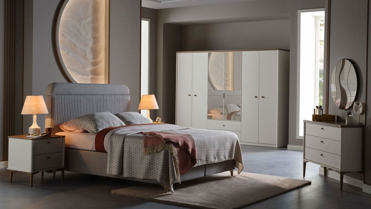 Φυσική κομψότητα σε μια διαχρονική πρόταση.Οι καθαρές γραμμές συνδυάζονται αρμονικά με τις ζεστές αποχρώσεις του φυσικού ξύλου και τις εκλεπτυσμένες χρυσές λεπτομέρειες δημιουργώντας ένα σύνολο ανάλαφρο και καλαίσθητο αναβαθμίζοντας κάθε γούστο κρεβατοκάμαρας!