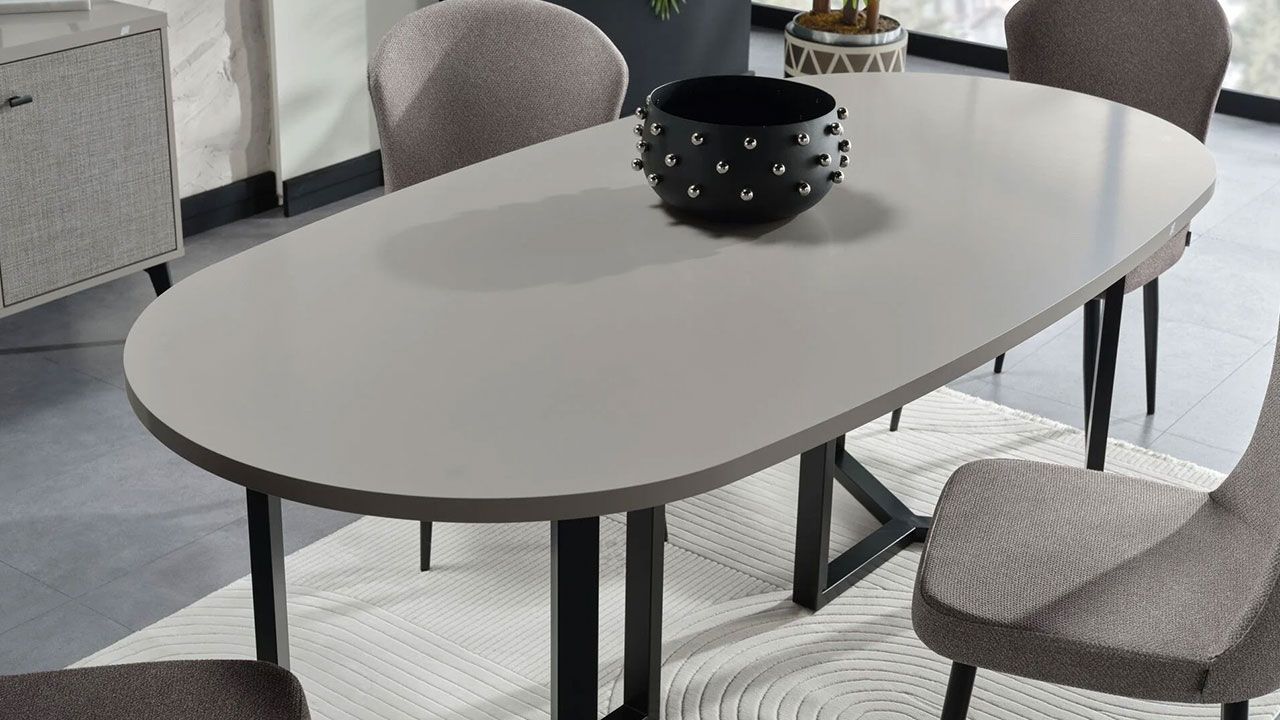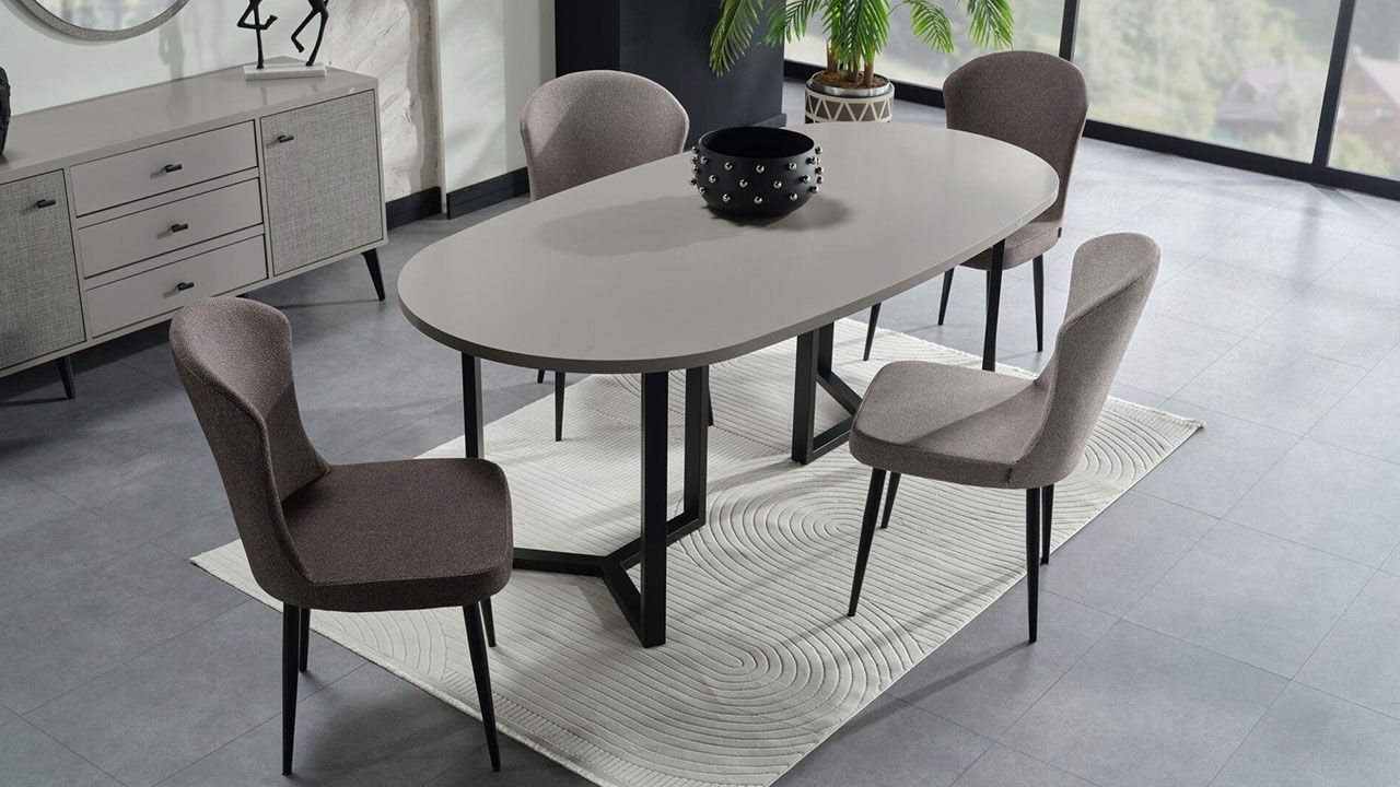 Το τραπέζι Truva ξεχωρίζει για τη μίνιμαλ σικ αισθητική του και τη δυναμική αντίθεση μοντέρνων αποχρώσεων. Η οβάλ επιφάνεια δένει τέλεια με τη μαύρη γεωμετρική μεταλλική βάση δημιουργώντας ένα τραπέζι statement, κομψό και απόλυτα ισορροπημένο.