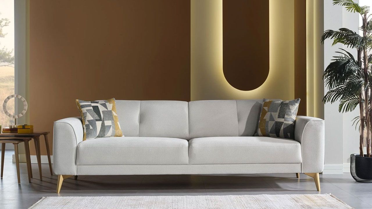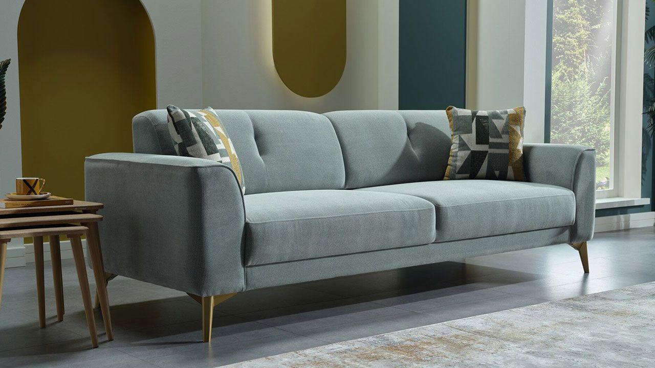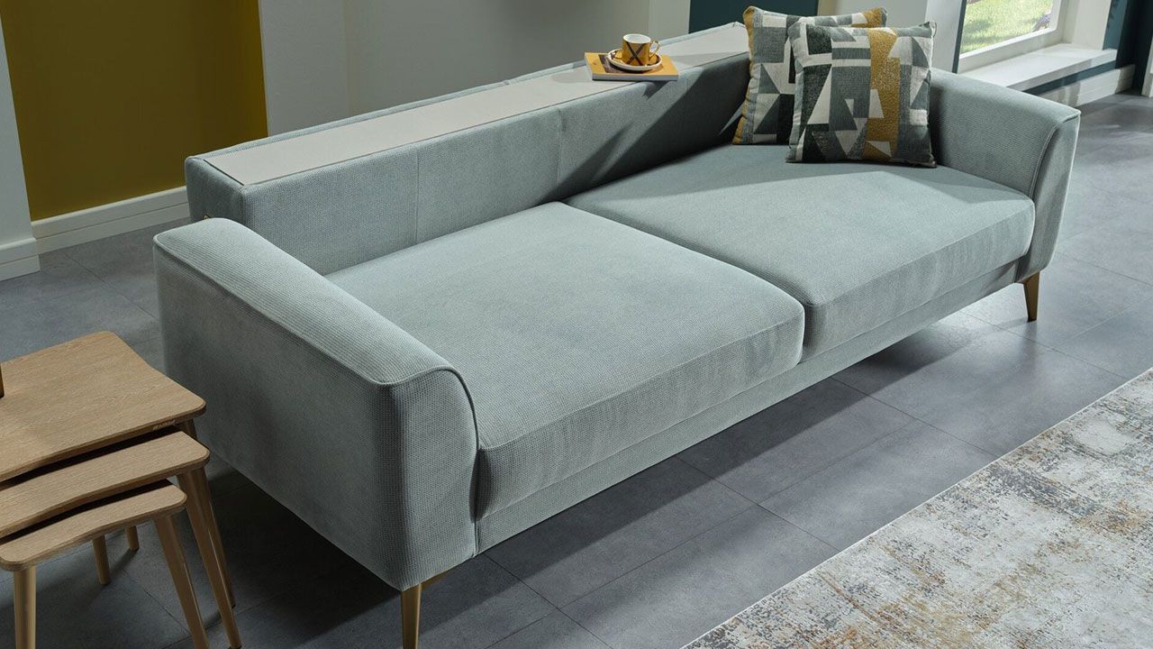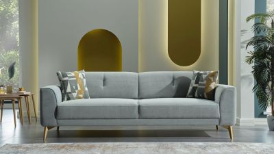 Καναπές με κομψό, διαχρονικό σχεδιασμό που συνδυάζει απαλές καμπύλες και λεπτεπίλεπτα πόδια σε χρυσαφί απόχρωση για μια αίσθηση ζεστασιάς και φινέτσας. Η καθαρή του γραμμή και η ισορροπημένη αναλογία τον καθιστούν ιδανικό για σύγχρονα αλλά και πιο κλασικά καθιστικά. Με άνετο κάθισμα και δυνατότητα μετατροπής σε κρεβάτι προσφέρει πρακτική λύση φιλοξενίας χωρίς να θυσιάζει την αισθητική του χαρακτήρα.
